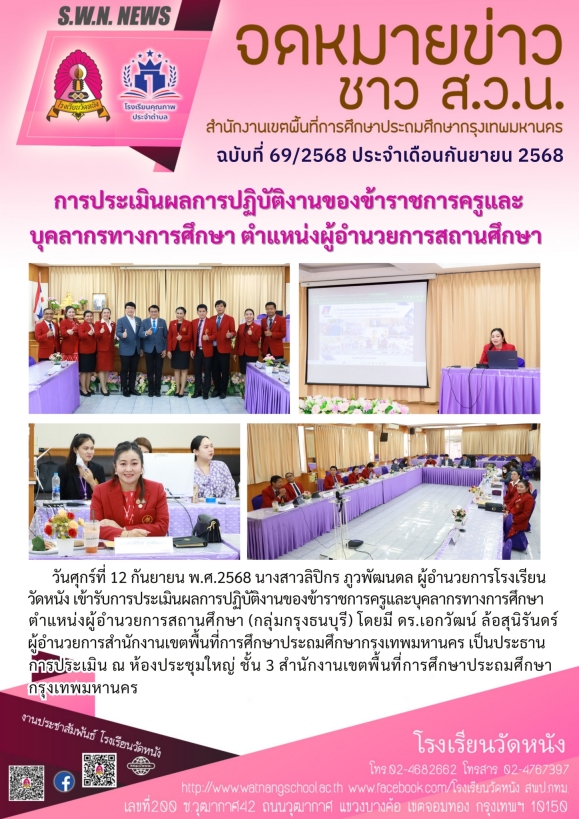 จดหมายข่าว ชาว ส.ว.น. ฉบับที่ 69/2568 การประเมินผลการปฏิบัติงานของข้าราชการครูและบุคลากรทางการศึกษา ตำแหน่งผู้อำนวยการสถานศึกษา
