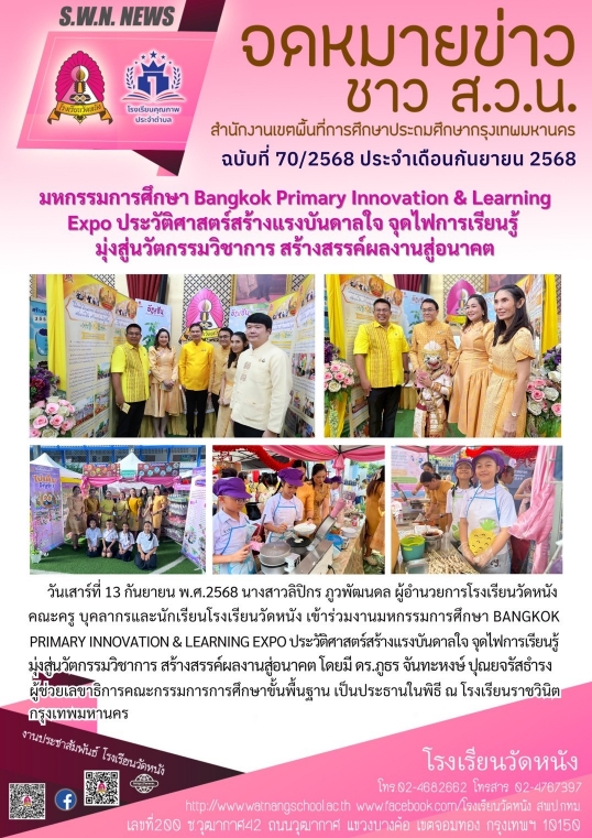 จดหมายข่าว ชาว ส.ว.น. ฉบับที่ 70/2568 มหกรรมกรศึกษา Bangkok Primary Innovation & learning Expo ประวัติศาสตร์สร้างแรงบันดาลใจ จุดไฟการเรียนรู้มุ่งสู่นวัตกรรมวิชาการ สร้างสรรค์ผลผงานสู่อนาคต